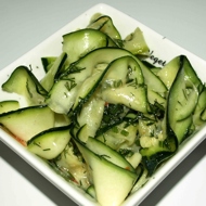 Slice the young zucchini lengthwise into thin strips (if you don't have a vegetable slicer, you can use a vegetable peeler).