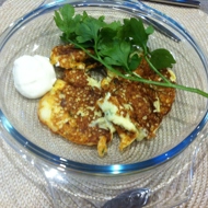 Pour with a ladle onto a well-heated skillet, previously greased with melted butter.