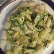 Heat a tablespoon of oil in a skillet and lightly sauté the asparagus until golden. Add the zucchini noodles and cook together for about 3-5 minutes.