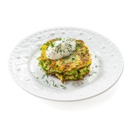Serve the zucchini pancakes with sour cream and finely chopped herbs.