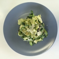 Grate the zucchini into thin wide noodles using a grater or a mandoline. Combine olive oil with crushed garlic, lemon juice, lemon zest, salt, and freshly ground black pepper. Rinse the capers to remove the brine, and shred the Parmesan into large flakes.
