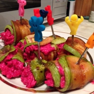 Boil the beet, cool it, and grate it on a fine grater. Squeeze the garlic into the beet, add kefir and cottage cheese, and mix until smooth.