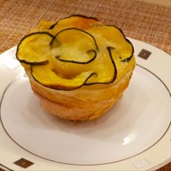 Roll the strips with the filling into a spiral and place them in the muffin tin. Brush each rose with egg. Bake for 20 minutes until the pastry is cooked through and golden.
