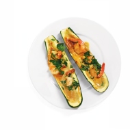 Remove the zucchini from the oven, fill the boats with the pasta and shrimp mixture, and return them to the oven for another fifteen minutes. When serving, sprinkle with parsley.