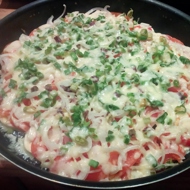 After 15 minutes, take out the zucchini and top it with tomato, onion, and cheese.